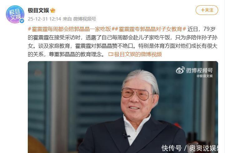 非得等郭晶晶确认好作业已经做完,霍震霆才能和孙辈们一起出去玩。在去年12月31日发布的一段采访里,霍震霆就谈到了郭晶晶在生活中对自己的这些“拿捏”,说是“抱怨”,但他内心对郭晶晶的赞赏却也溢于言表。